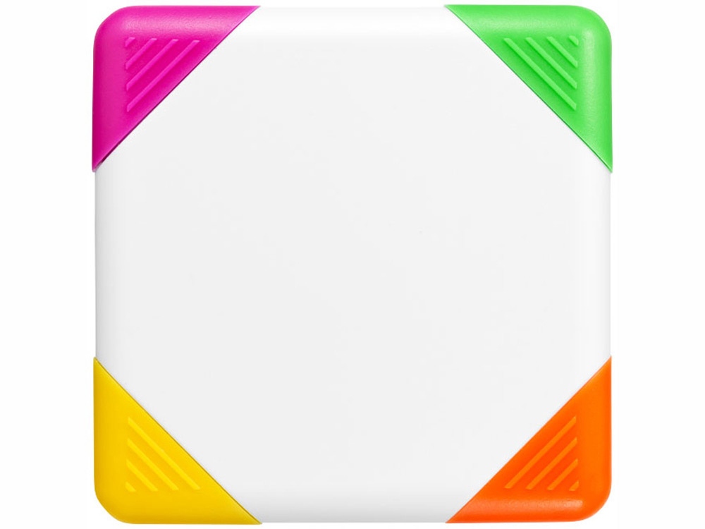 Квадратный маркер с плоским наконечником желтого, оранжевого, розового и зеленого цвета.