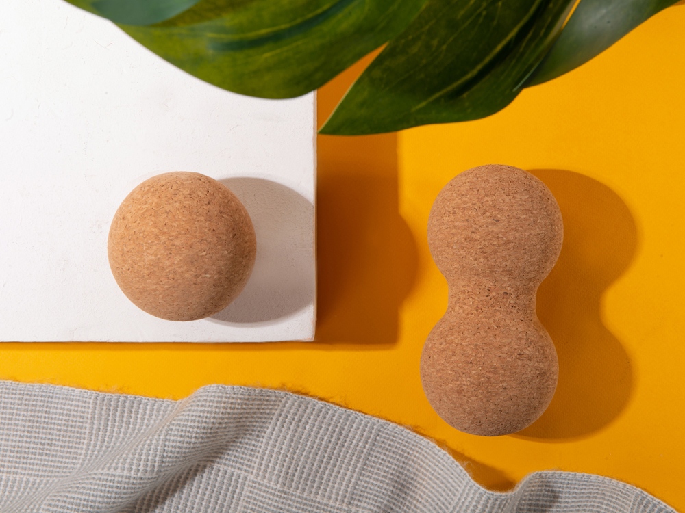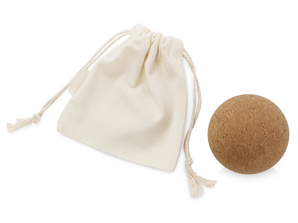 Массажный мяч из пробки спортивного бренда VIbe в хлопковом мешочке. Мяч помогает расслабить мышцы после тренировки и разогреть их до занятий спортом, и подходит для голеней, стоп, мышц бедра, поясницы, груди, верхней части спины, шеи, косых мышц живота, рук.