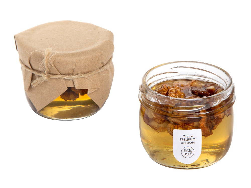 Мед и орехи прекрасно сочетаются друг с другом, образуя оригинальный и запоминающийся вкус. Медовый десерт идеально подойдет для чаепития, поэтому подобный подарок можно также дополнить чаем. Так как продукт состоит из натуральных ингредиентов, возможно его засахаривание.
