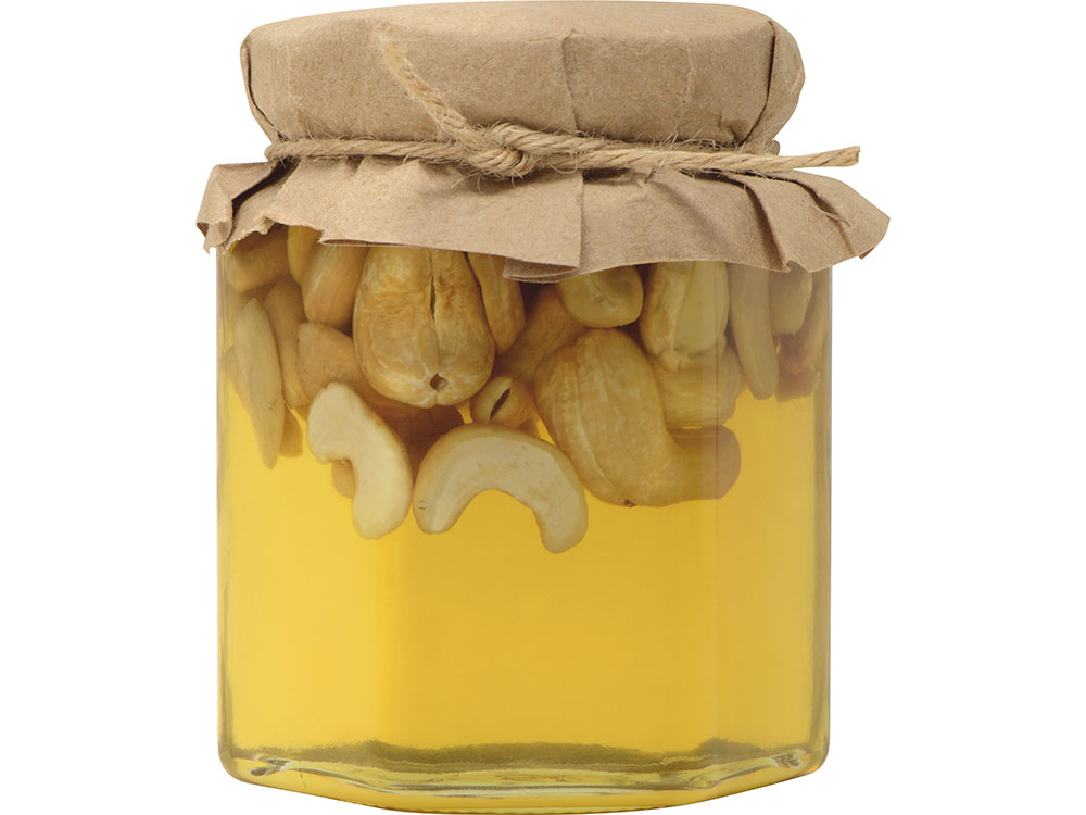 Мед и орехи прекрасно сочетаются друг с другом, образуя оригинальный и запоминающийся вкус. Медовый десерт идеально подойдет для чаепития, поэтому подобный подарок можно также дополнить чаем. Т.к. продукт состоит из натуральных ингредиентов, допускается его засахаривание