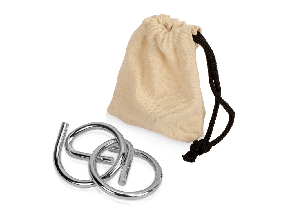 Головоломка “Mind-teaser”, выполненная из нержавеющей стали, подойдет как детям, так и взрослым. Поставляется в индивидуальном хлопковом мешочке, на котором очень выигрышно будет смотреться логотип любой компании. Уровень – сложный.