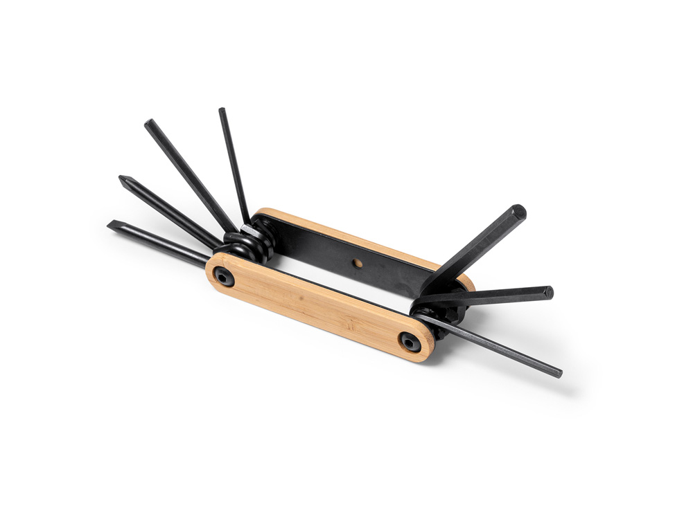 Многофункциональный инструмент с отвертками и шестигранными ключами. Нержавеющая сталь. Накладки на корпус из дерева.