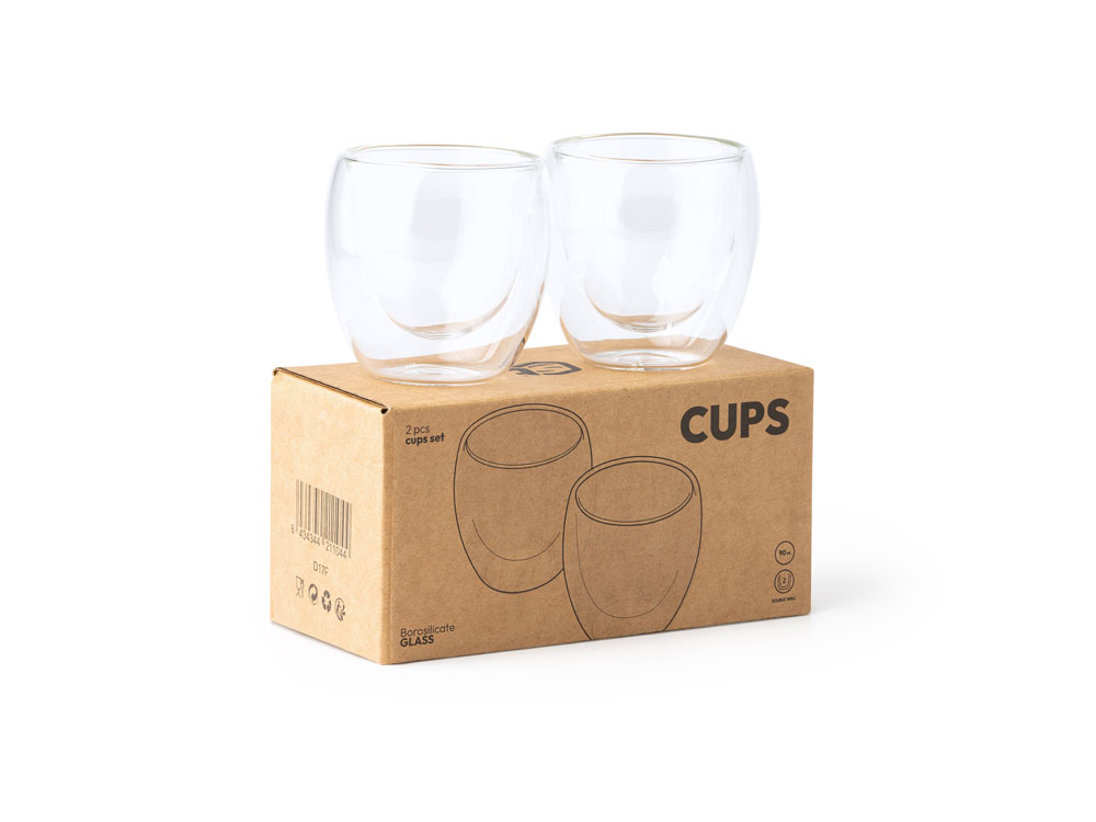 Набор из 2 стаканов с двойными стенками из боросиликатного стекла. Емкость 90 мл.