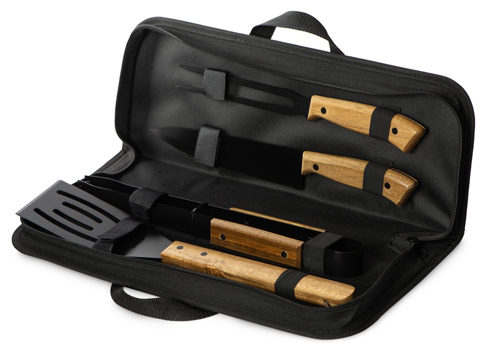 спатула, щипцы, вилка, нож, чехол на молнии
