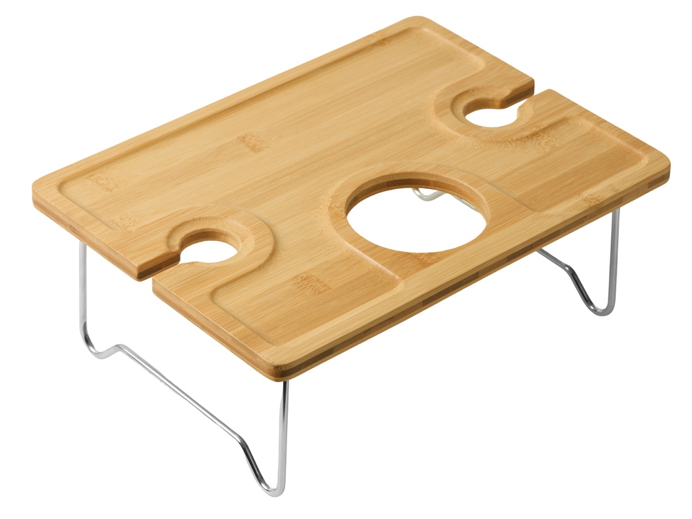– Надежная фиксация напитков: Два углубления для бокалов и центральное отверстие для бутылки – забудьте о пролитых напитках!