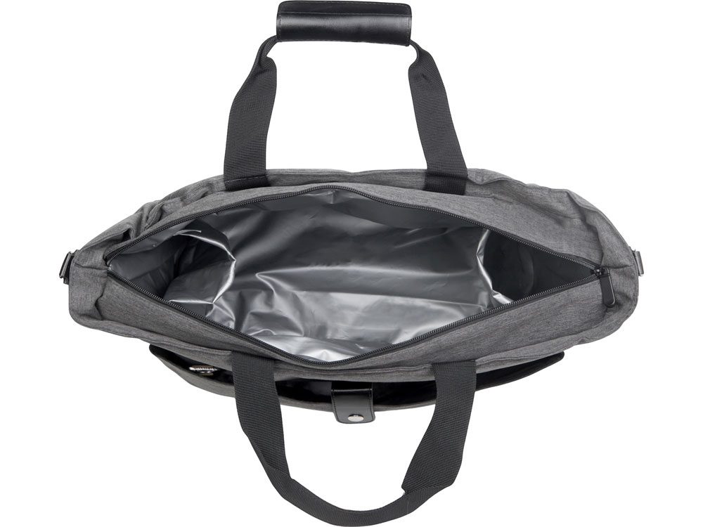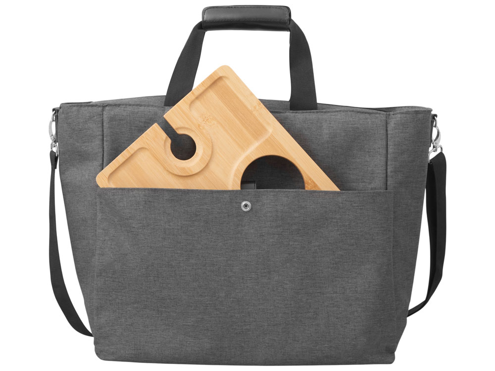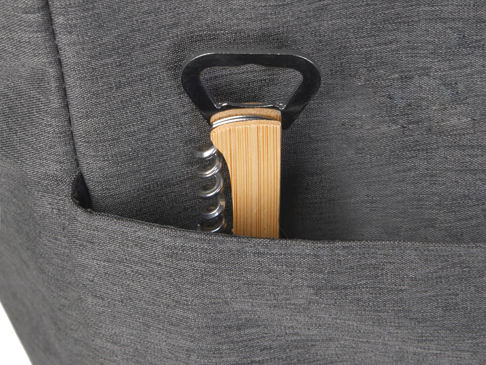 Большую вместительную сумку-холодильник удобно использоваться для транспортировки охлаждённых или подогретых продуктов и бутылок с разнообразными напитками. Внутри по бокам сумки расположены 2 изотермических кармана для высоких бутылок. Основное отделение на молнии. 2 ручки с фиксатором на липучке для удобства носить в руке. Большой наружный карман на кнопке. Съемная лямка на плечо регулируется по длине. Выгодный бонус – штопор с бамбуковой ручкой в комплекте.