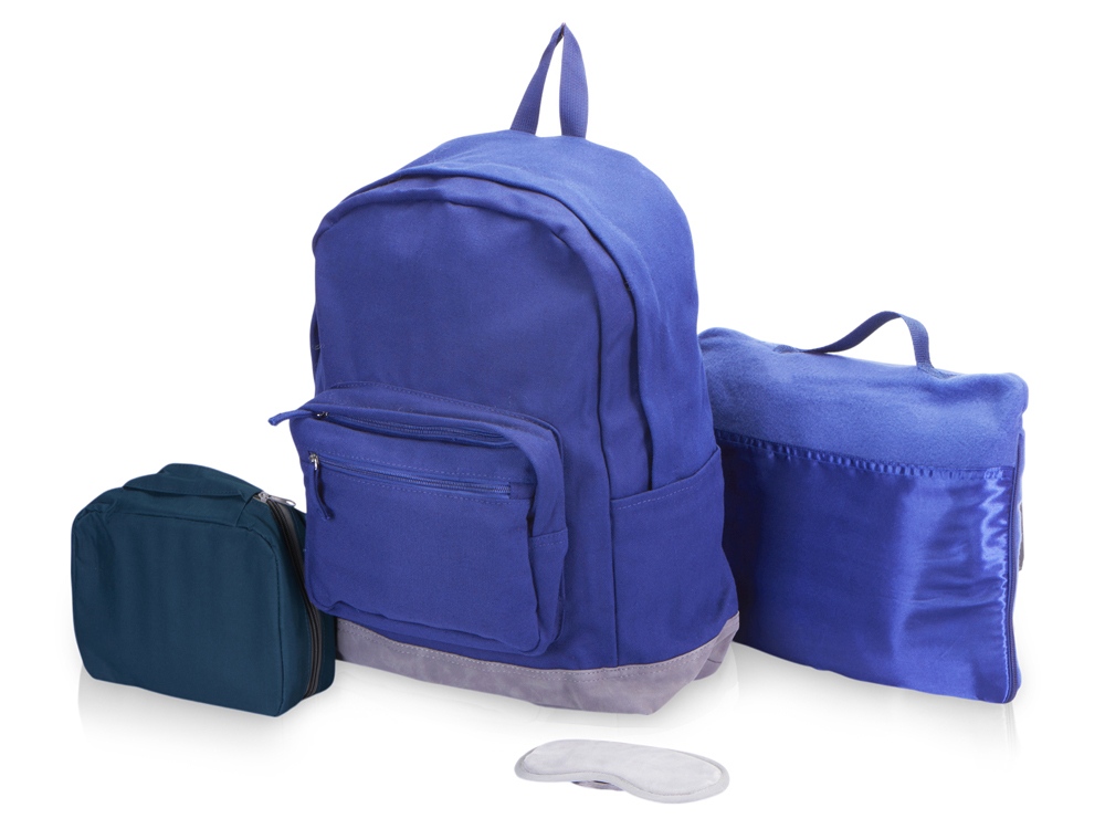 Отличное предложение для тех, кто собрался в путешествие! Рюкзак вмещает до 8 кг и прекрасно подойдет для ручной клади. Пледом можно укрыться в полете или использовать как подушку в пути или в случае длительного ожидания рейса. А чтобы сон был комфортным, воспользуйтесь маской на глаза, которую можно хранить вместе другими необходимыми для путешествия мелочами в удобном несессере. Такой набор обеспечит вам комфорт в пути и удобство в поездке на любом виде транспорта!
