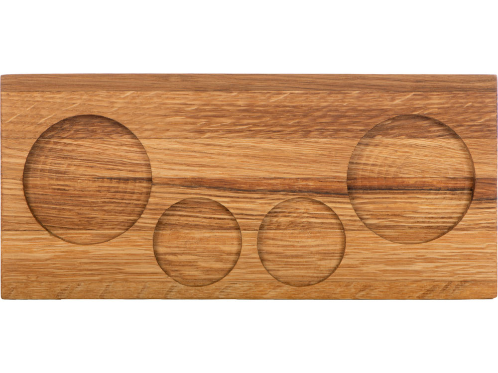 Для сервировки в набор входит дубовый поднос с выемками под бокалы и шайбы.