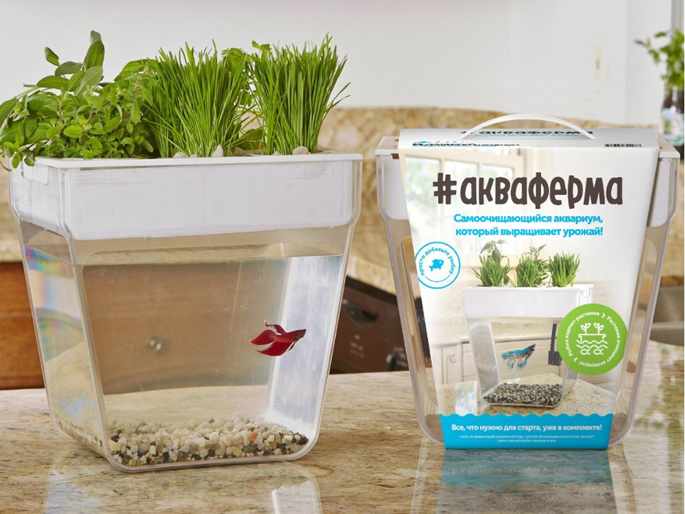 Акваферма представляет собой самоочищающийся аквариум, который ещё и выращивает урожай.
