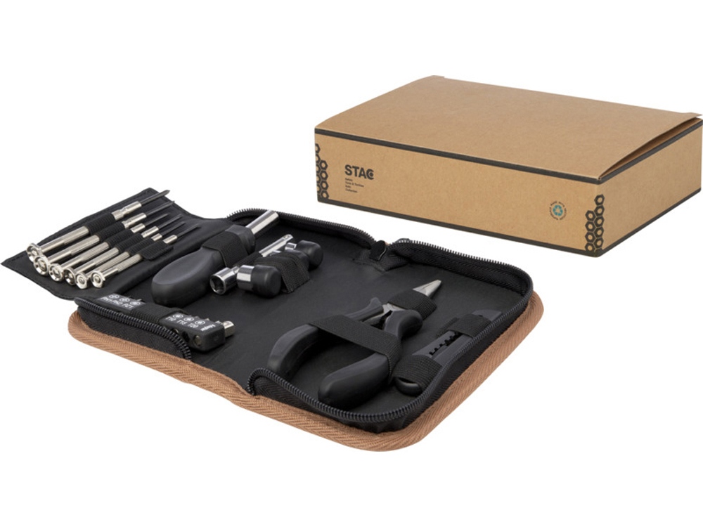 Набор инструментов Spike сочетает в себе практичность, долговечность и экологичность в одной красивой упаковке. Его чехол для хранения из пробкового дуба не только привлекателен визуально, но и экологически безопасен без ущерба для качества и производительности. Внутри чехла вы найдете набор из 24 основных инструментов, изготовленных из углеродистой стали и переработанной пластмассы, сертифицированной RCS: 1 нож для чистого реза и точной обрезки, 6 прецизионных отверток для деликатных работ, 10 бит отвертки, 1 ручка отвертки с удобной рукояткой, 1 удлинитель для труднодоступных мест, 4 насадки для различных работ и 1 длинноносые плоскогубцы для захвата и изгиба. Поскольку пробковый дуб является природным материалом, цвет и размер изделия могут слегка различаться, что, в свою очередь, может повлиять на итоговый вид печати. Упаковано в подарочную коробку STAC из экологически чистых источников. Carbon steel, Recycled PP Plastic.