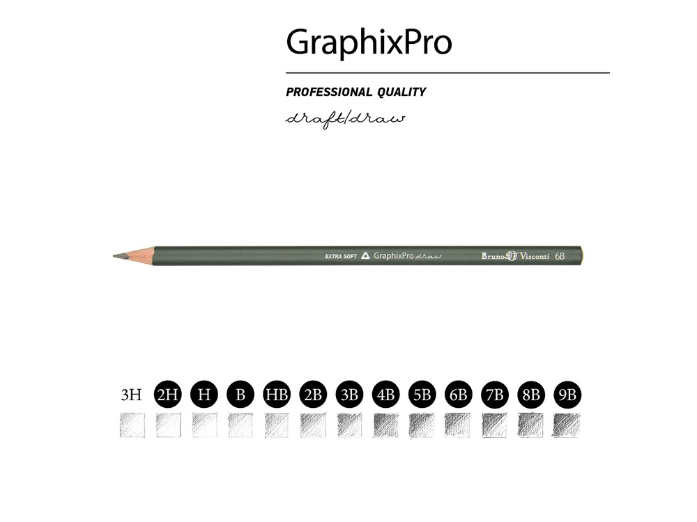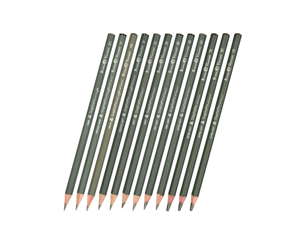 Двенадцать чернографитных карандаша «Sketch&Art» от BrunoVisconti – универсальный набор карандашей различной степени твердости (2H-9B) для выполнения различных графических работ.
