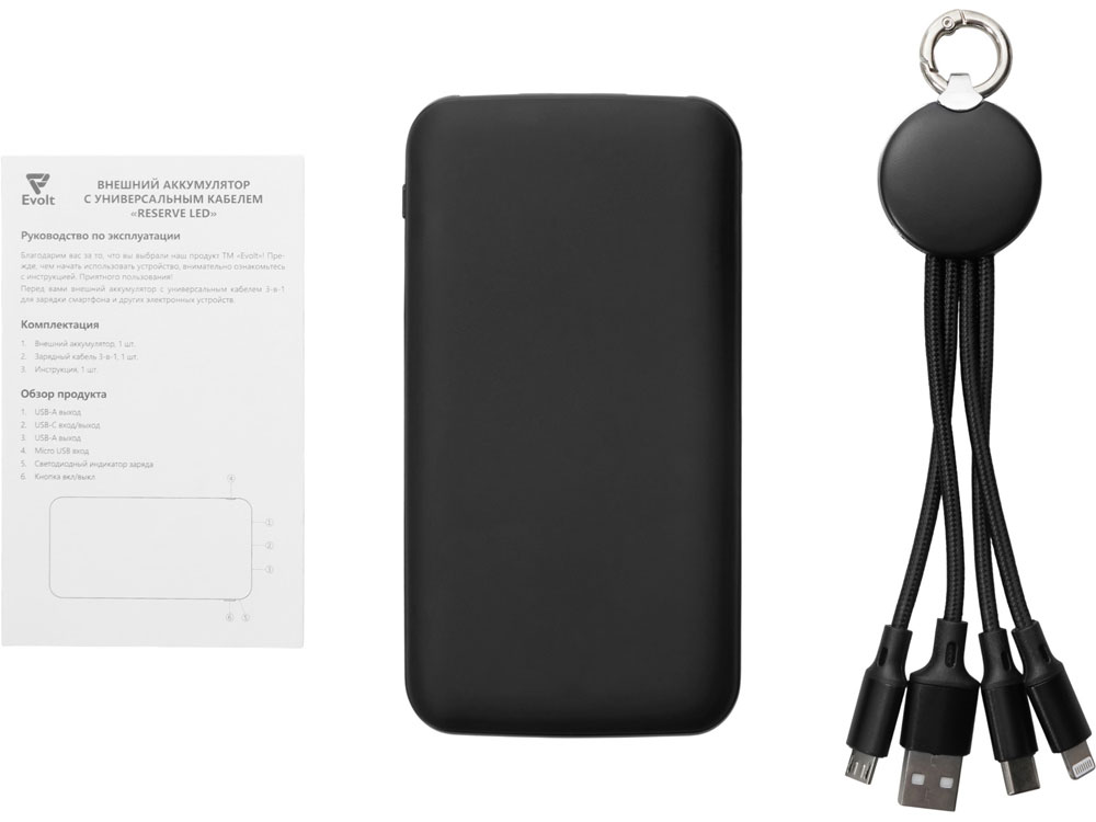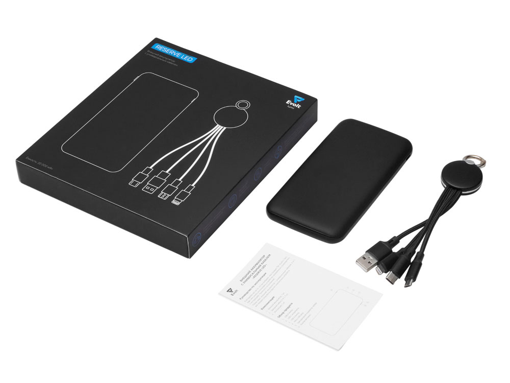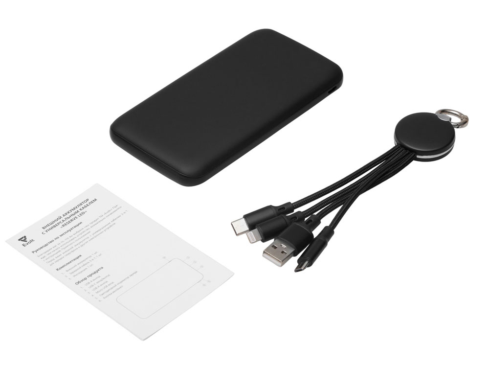 Практичный и стильный набор для зарядки в дороге: внешний аккумулятор на 10 000 мА·ч и универсальный кабель с тремя разъёмами (Micro USB, Lightning, USB Type-C). Оба элемента комплекта оснащены подсветкой логотипа — ваш бренд всегда на виду, даже в темноте. Повербанк обеспечивает 2–3 полных заряда смартфона и оснащён двумя выходами (USB-A и USB-C) для одновременной зарядки двух устройств. Поставляется в прочной подарочной коробке с шубером — идеальное решение для корпоративных подарков.