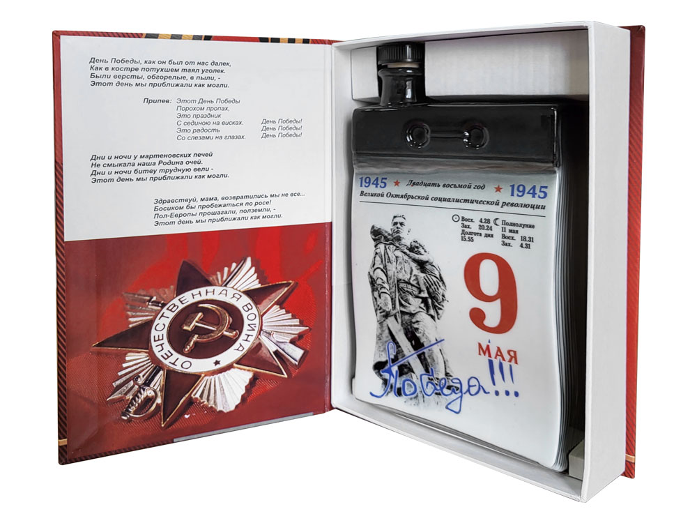 День Победы — один из самых важных и памятных государственных праздников в нашей стране. В этот знаковый для России день принято дарить памятные сувениры. Штоф «Календарь 9 мая» — это великолепный подарок, который запомнится надолго.