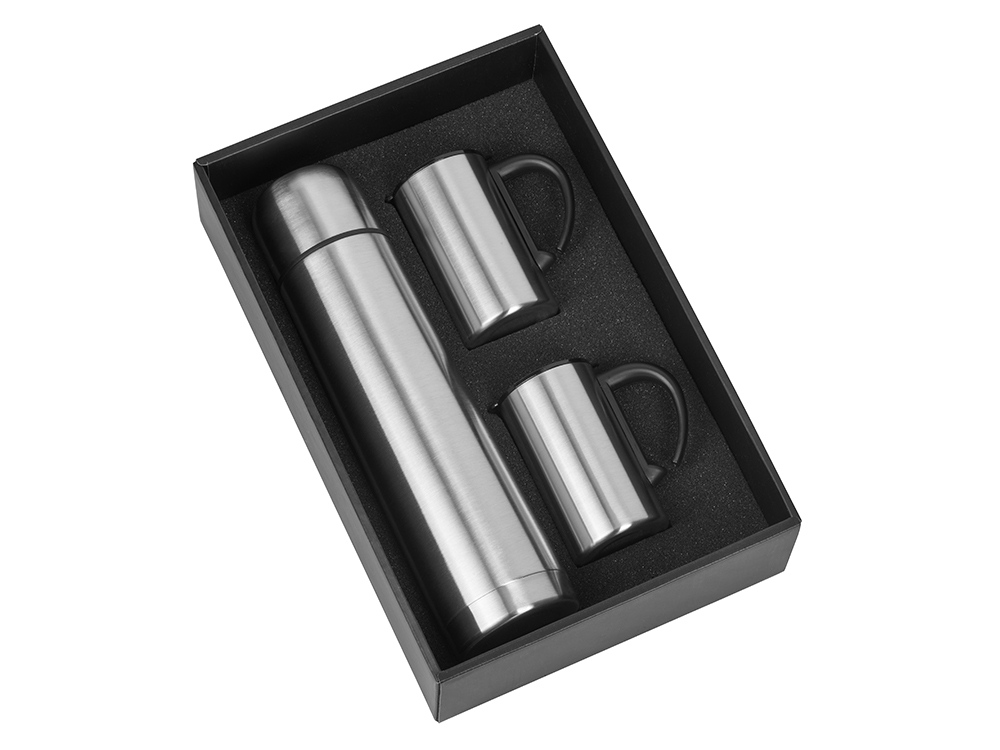 Отличный набор, состоящий из термоса на 1000 мл и двух термокружек на 300 мл, пригодится и в дороге, и во время пикника или похода. Нержавеющая сталь не впитывает запахи и отлично удерживает тепло более 24 часов. Термокружки идут со специальными пластиковыми крышками. Упакован в картонную коробку с мягким поролоновым ложементом.