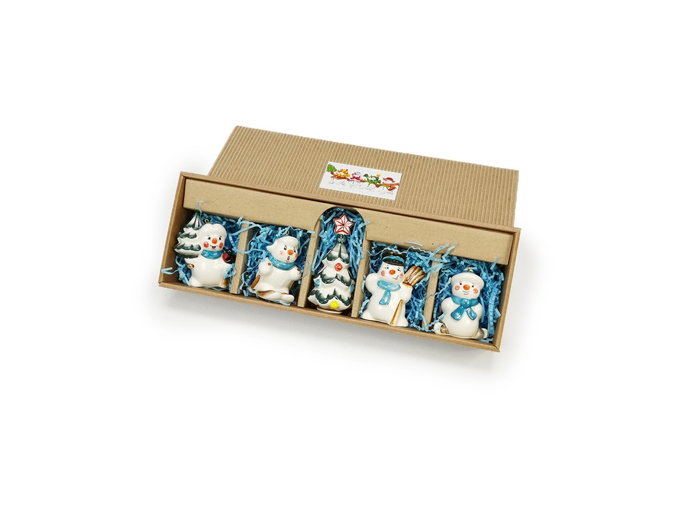 Погрузитесь в зимнюю сказку с нашим очаровательным набором фарфоровых снеговиков! Каждое изделие выполнено с любовью и заботой, а нежная подглазурная ручная роспись придает им уникальный характер. Этот набор включает четырех снеговиков и милую ёлочку, что создаёт неповторимую атмосферу зимнего волшебства в вашем доме. Каждый снеговик выглядит по-своему, радуя глаз и поднимая настроение в праздничные дни. Повесьте этот набор на свою елку или используйте его в качестве красивого декора на столе — и пусть каждый день зимы станет особенным!