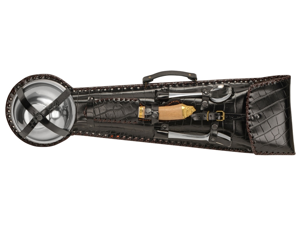 Набор для пикника в кожаном чехле ручной работы.
