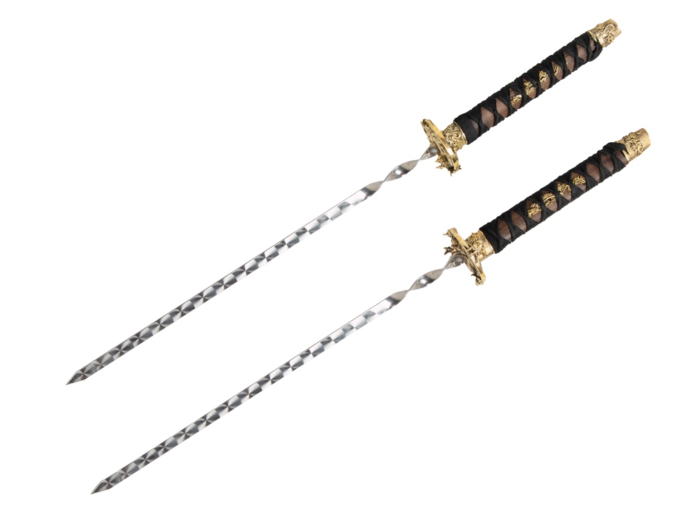 Набор состоит из двух шампуров. Шампур- 82 см, рабочая поверхность- 40 см.