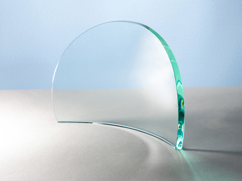 Награда выполнена из прозрачного стекла, не имеет постамента и никаких отвлекающих деталей. Минималистична и лаконична.