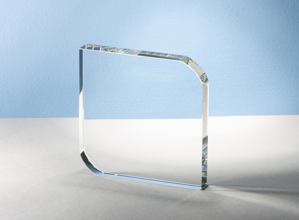 Награда выполнена из прозрачного стекла, не имеет постамента и никаких отвлекающих деталей. Минималистична и лаконична. ·         Минималистичный дизайн ·         Нестандартная форма ·         Большая поверхность для нанесения