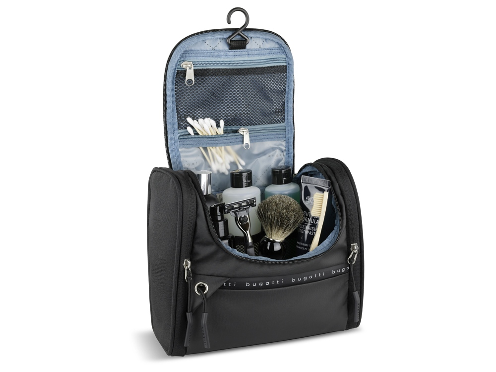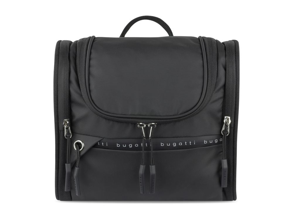 Функциональная организация: основное отделение на молнии с 3 сетчатыми карманами, сетчатое отделение на молнии, прозрачное отделение на молнии, крючок для подвешивания, 2 боковых отделения на молнии, передний карман на молнии, ручка.
