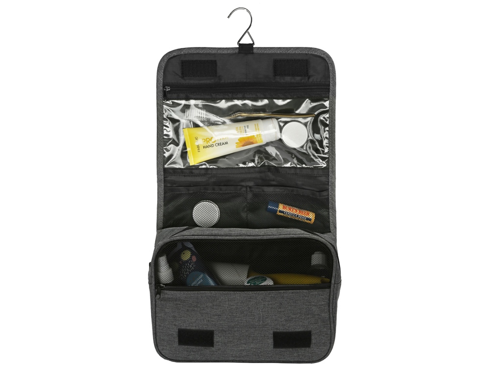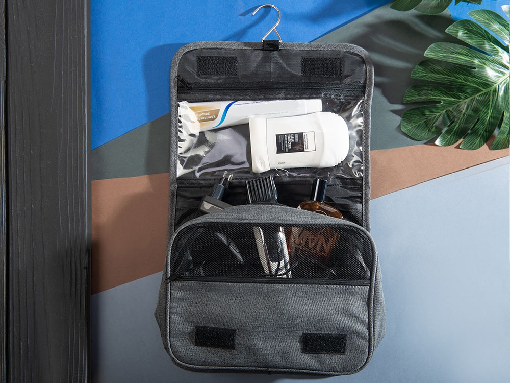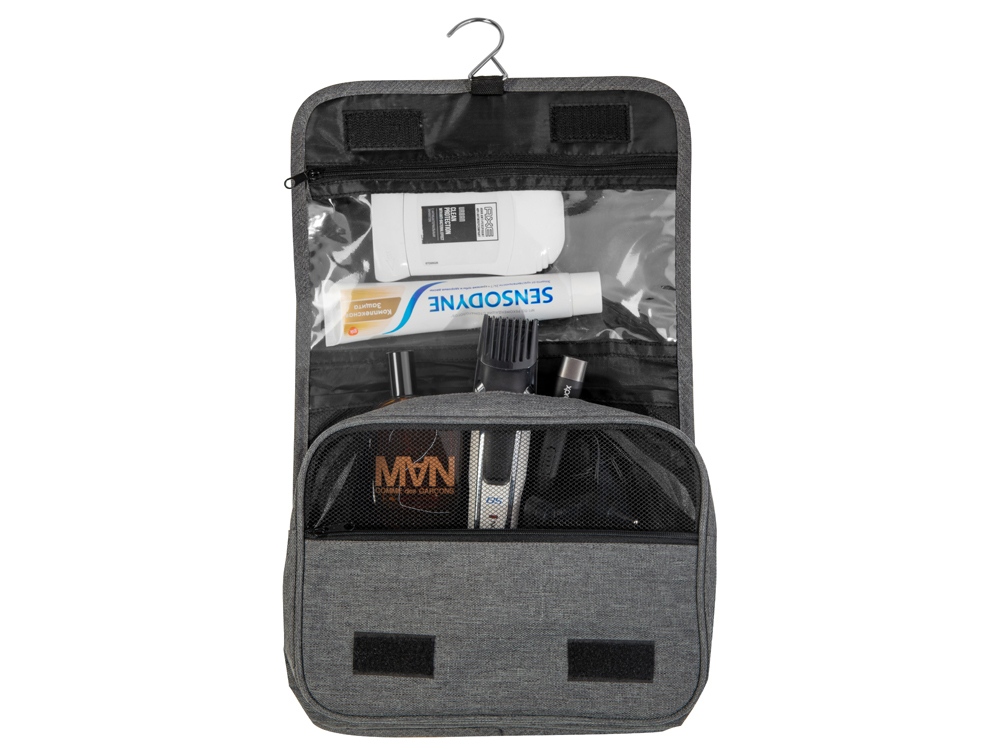 Несессер Planar оснащен металлическим крючком для подвешивания, который в сложенном виде убирается внутрь и не будет вам мешать. Для переноски несессер имеет ручку снаружи, а еще вы найдете плоский вместительный карман на его задней стороне. Клапан несессера закрывается на липучки и имеет три кармана — большой на молнии из прозрачного материала, который легко моется, даже в случае, если флакон изнутри разгерметизировался, и два из сетки, куда можно положить необходимые мелочи и которые удобнее использовать в висящем виде.