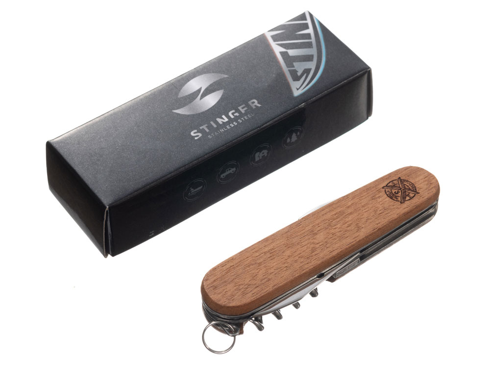 Нож перочинный STINGER имеет 10 функций: 1. Большое лезвие 2. Консервный нож с: 3. – Малой отвёрткой 4. Шило с: 5. – Иглой 6. Штопор 7. Открывалка для бутылок с: 8. – Отвёрткой 9. – Инструментом для снятия изоляции 10. Кольцо для ключей ХАРАКТЕРИСТИКИ Материалы: • лезвие/инструменты: нержавеющая сталь AISI 420, твердость 44-48 HRC • […]