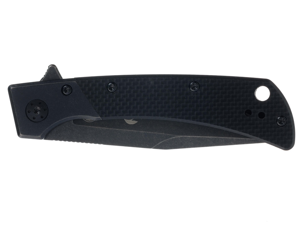 Нож открывается при помощи флиппера, который может дополнительно выполнять роль гарды, предотвращая соскальзывание руки на лезвие клинка. На верхней части лезвия расположен подпальцевый упор с насечкой для более комфортной работы.