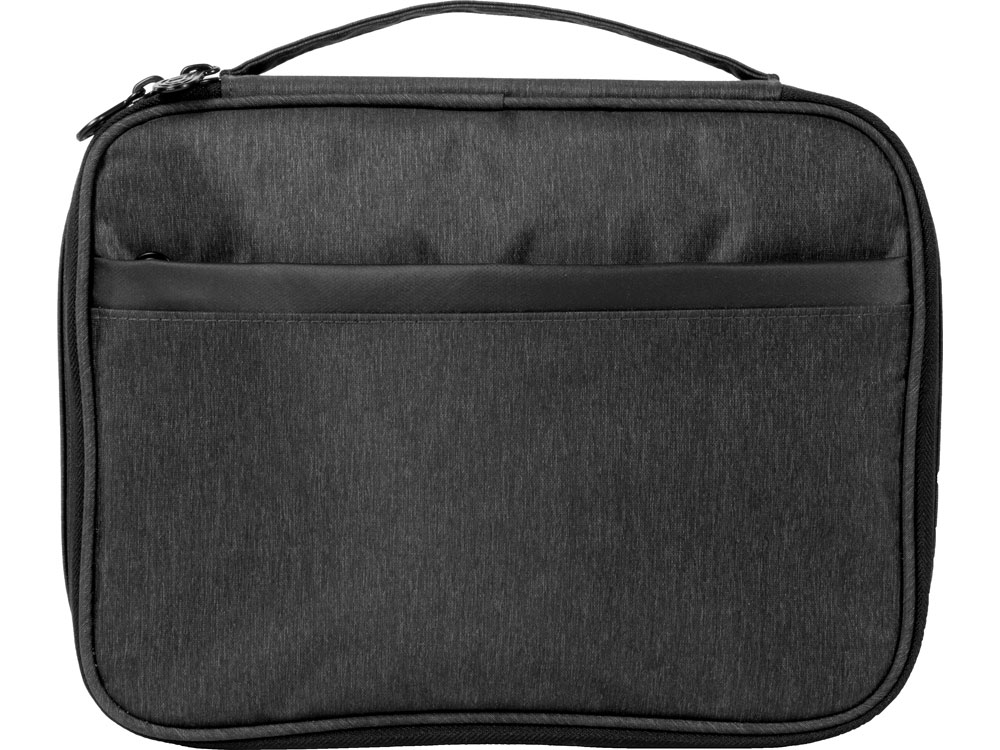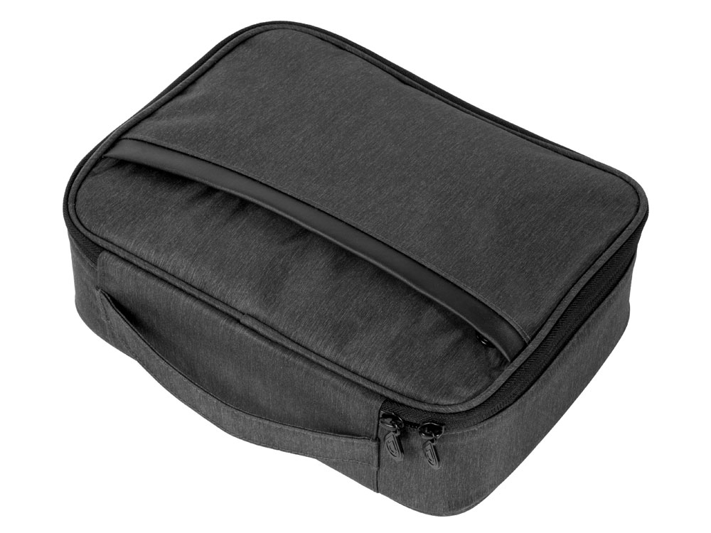 С внешней стороны органайзера есть дополнительный карман на молнии и удобная ручка для переноски.