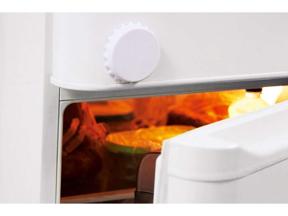 Открывалка в форме крышки – креативное и удобное приспособление. Вы никогда не потеряете ее, ведь открывалка легко крепится на холодильник двумя магнитами.