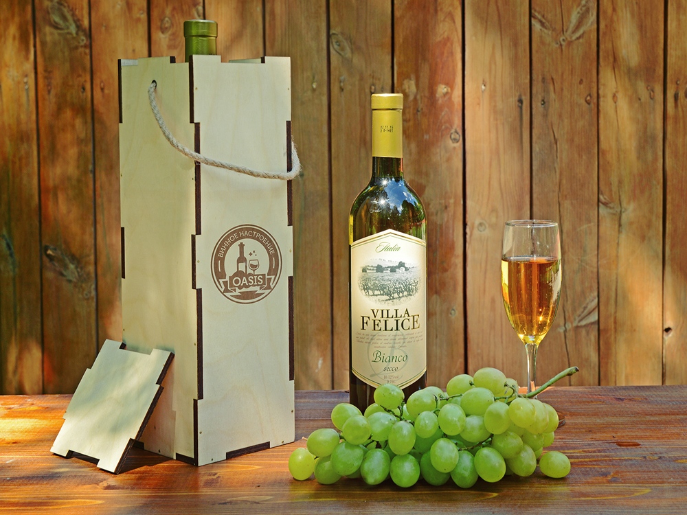 Подарочный пенал для упаковки бутылок, изготовлен из экологически чистых материалов. В него легко можно поместить винную или любую другую бутылку. Внутри пенала для алкоголя находится деревянная стружка, которая служит как для декора, так и для сохранности подарка.