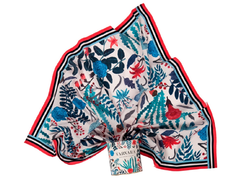 Платок из искусственного шелка саржевого плетения (твил) размером 70*70 см., с авторским принтом «Голубые розы». Авторский принт написан художницей вручную специально для российского бренда Varvara. Художница размышляла на тему русской природы, культуры и искусства: в основе принта лежат листья папоротника, соцветия клюквы, бутоны розы и загадочные птицы. Композиция рисунка напоминает иллюстрацию к русским сказкам. Платок […]