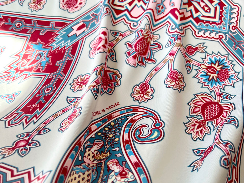 Дизайн платка “Кавказский скакун” от бренда “Русские в моде” by Nina Ruchkina навеян прекрасным и загадочным Востоком, вдохновляющим творцов всего мира.