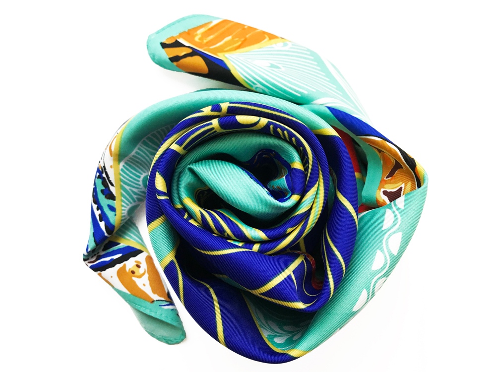 В дизайне платка «Русские сезоны. Лев Бакст» мы воспроизвели эскизы костюмов к таким балетным спектаклям как «Клеопатра», «Шехерезада» и «Послеполуденный сон Фавна», поражающие зрителей своей фантазией, сказочной роскошью, утонченной изысканностью линий, новыми и смелыми сочетаниями красок.