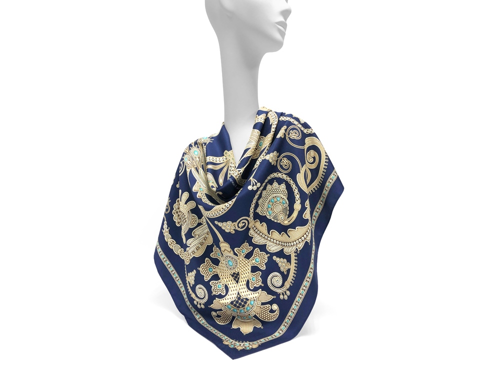 Платок «Русское золотное шитьё» посвящён драгоценному старинному русскому рукоделию. Дошедшие до нас памятники шитья, выполненные русскими мастерицами, являются произведениями высокой культуры. В изделиях сочетаются талант художника и тонкий вкус, духовное богатство, исполнительское мастерство вышивальщиц. В центре композиции излюбленный сюжет традиционного русского орнамента – царственные павлины. Они горделиво восседают в обрамлении из фантастических цветов и виноградных […]