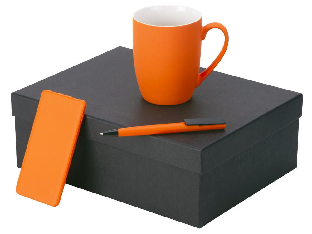 кружка — фарфор с покрытием soft-touch, повербанк — пластик с покрытием soft-touch, ручка — пластик с покрытием soft-touch.