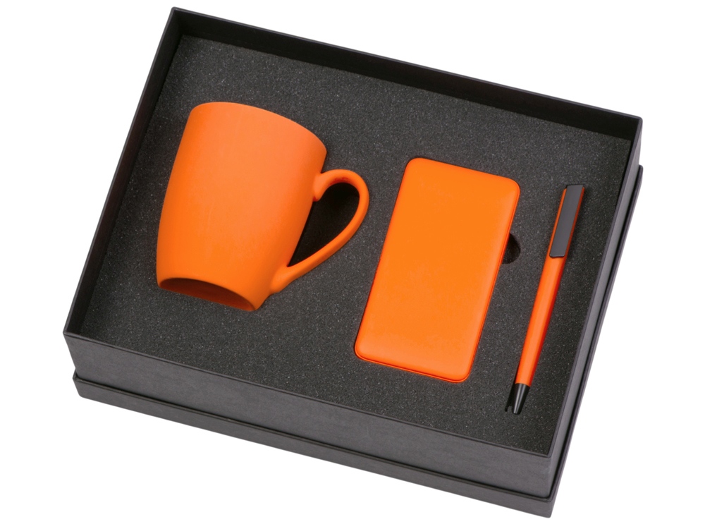 кружка – фарфор с покрытием софт-тач, повербанк – пластик с покрытием софт-тач, ручка – пластик с покрытием софт-тач