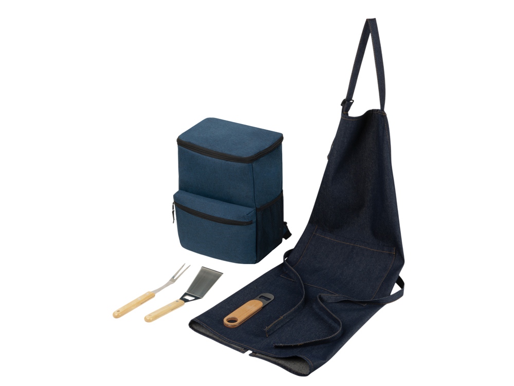 Плотный джинсовый фартук имеет большой вместительный карман.