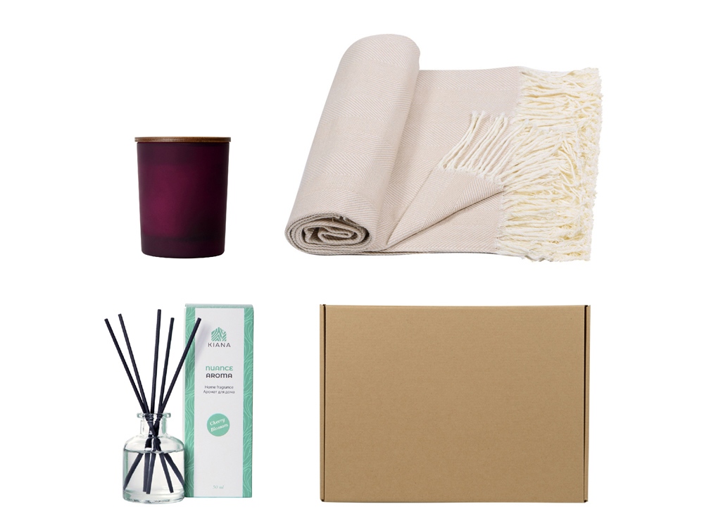 Подарочный набор для дома с пледом, свечой и диффузором