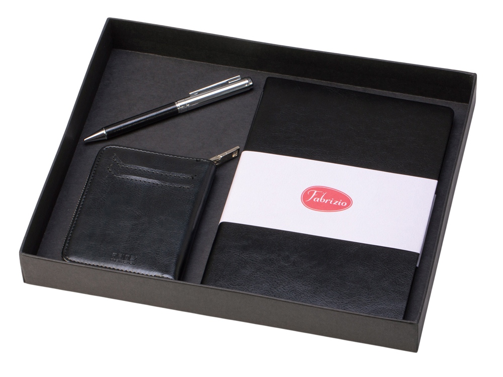 Стильный набор в едином дизайне — идеальный вариант для подарка офисным работникам. Гибкая обложка блокнота выполнена из искусственной кожи, блок блокнота — кремового цвета с цветным срезом и оснащён ляссе в тон обложки. Металлическая шариковая ручка удобна в использовании благодаря вставке из полиуретана в цвет картхолдера и блокнота. Картхолдер имеет RFID защиту от считывания, — […]