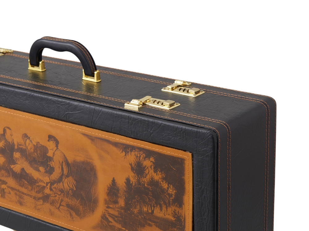 Кейс из сплит-кожи, с повышенной износостойкостью, внутренняя отделка натуральная кожа с художественным выжиганием.
