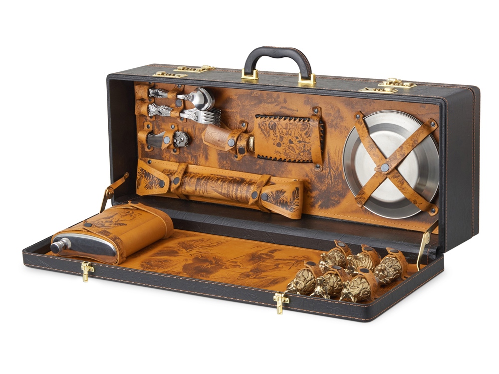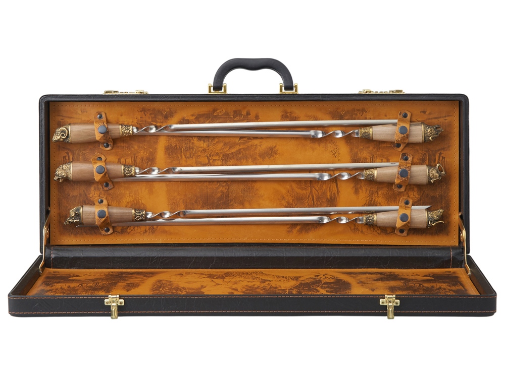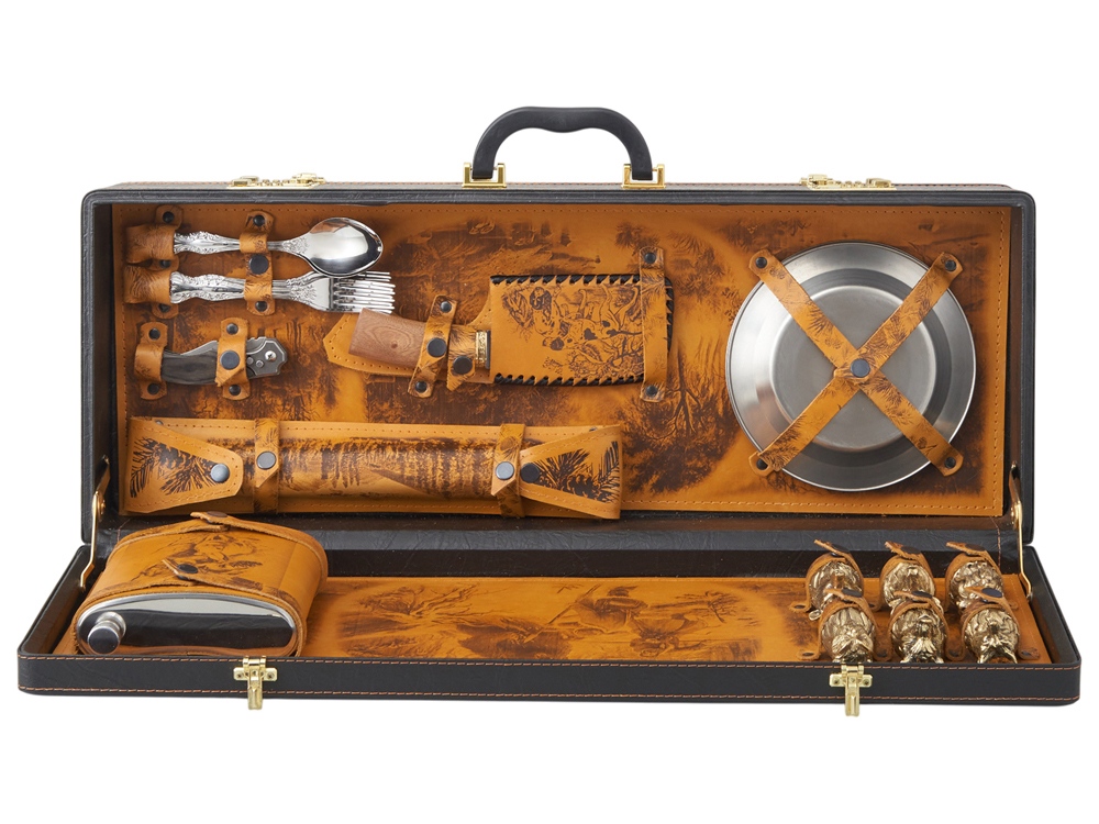 Кейс из сплит-кожи, с повышенной износостойкостью, внутренняя отделка натуральная кожа с художественным выжиганием. В комплект входит: Шампура «Люкс»- 6 шт. Тарелка жестяная- 6 шт. Ложки — 6 шт Вилки- 6 шт Стопка чарка- 6 шт. Нож разделочный (нерж.сталь) без рисунка- 1 шт. Нож раскладной 1 шт. Фляжка 1л в чехле- 1 шт. Мангал 350мм- 1 […]