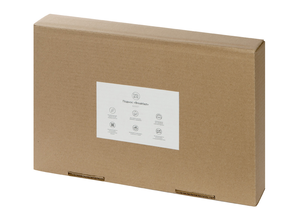 Поднос «Breakfast» от Eat&Bite изготовлен из натурального дуба, обработанного пищевым маслом. На него поместятся кофейник, чашка и небольшая тарелка.