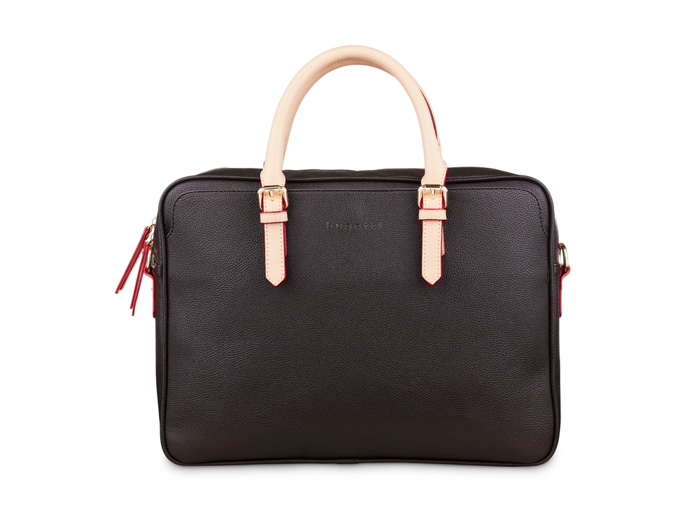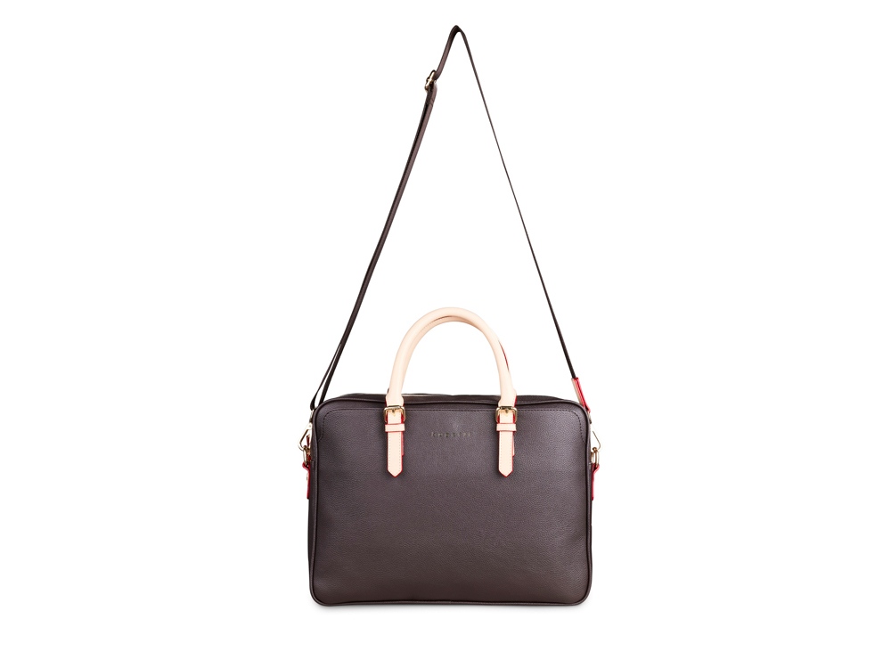 Внешняя организация: передний карман на магнитной кнопке, задний карман на молнии с ремнём для соединения с телескопической ручкой чемодана, ручки высотой 14 см, съёмный регулируемый плечевой ремень (до 130 см)