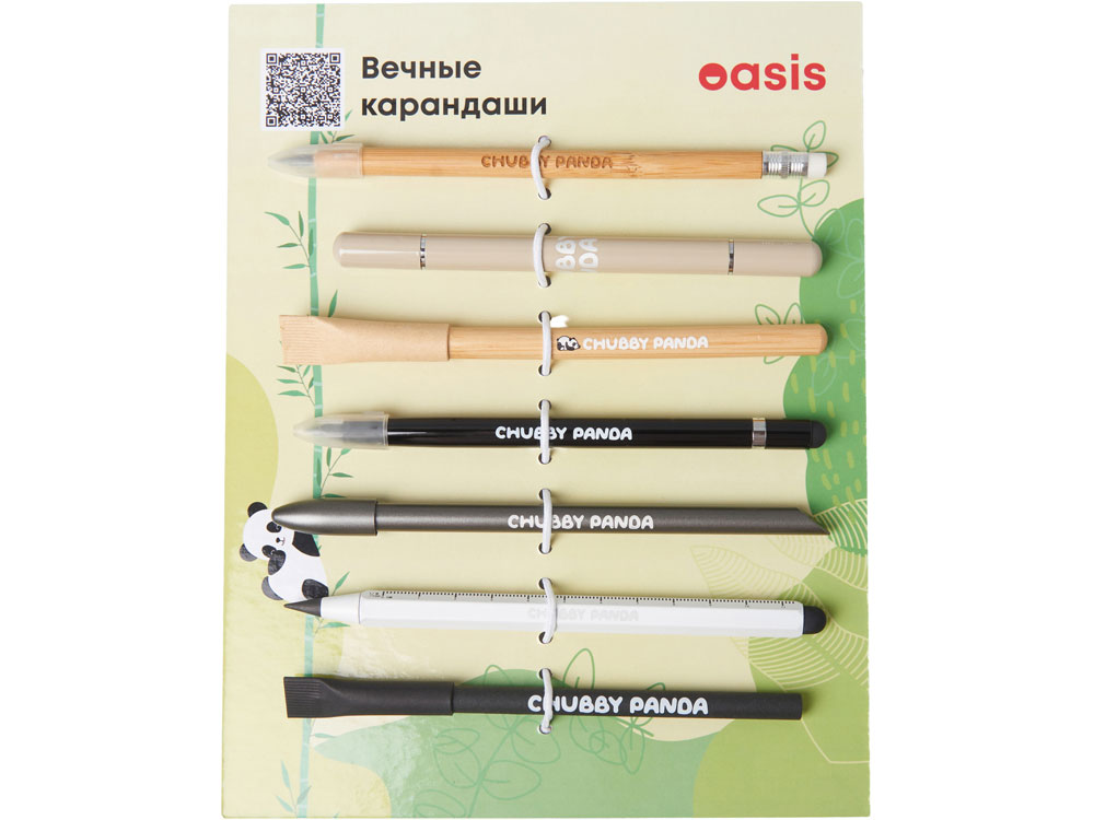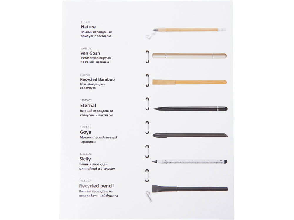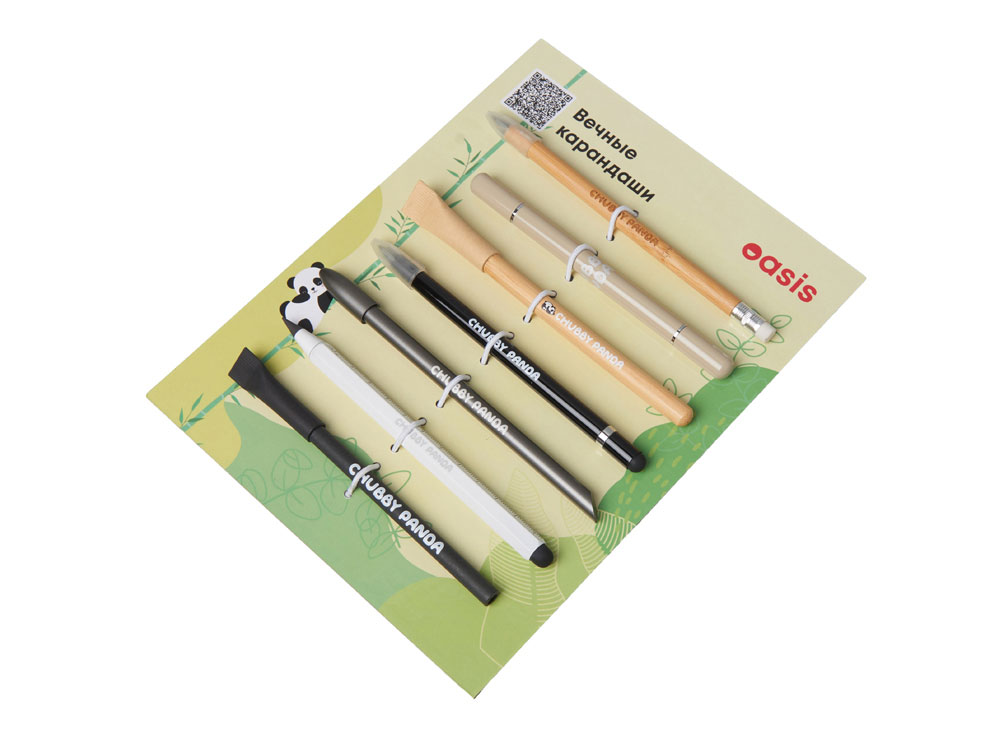 Промо-сет вечных карандашей — это презентационный комплект, включающий 7 уникальных моделей с несколькими вариантами нанесения: УФ-печать, тампопечать, гравировка.