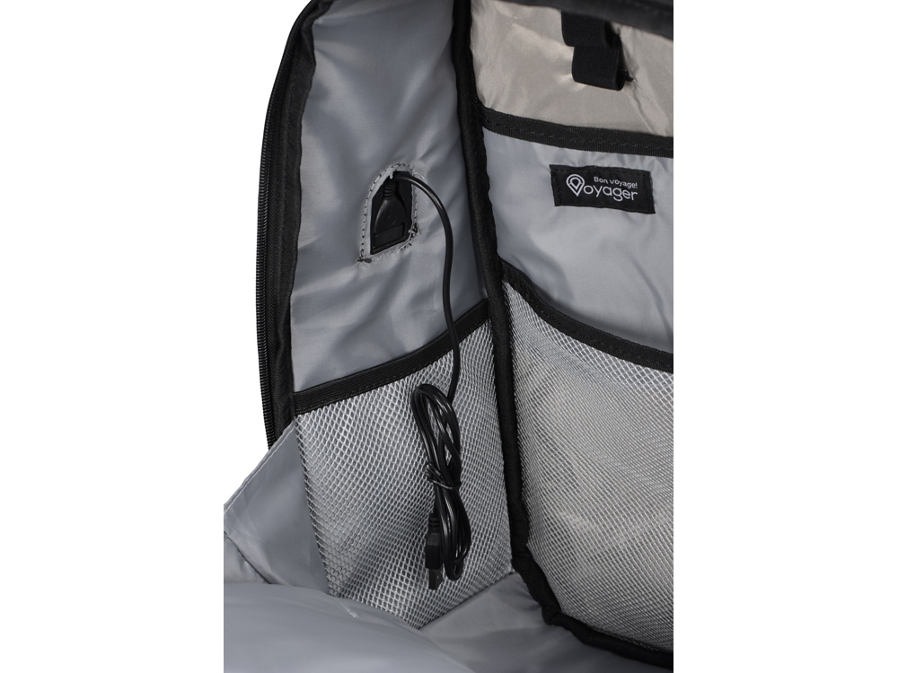 — внешний USB порт для зарядки устройств (шнур для подключения находится в большом внутреннем сетчатом кармане),