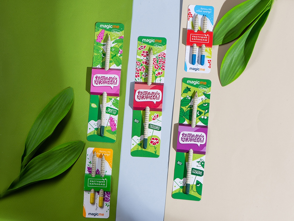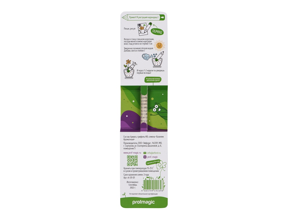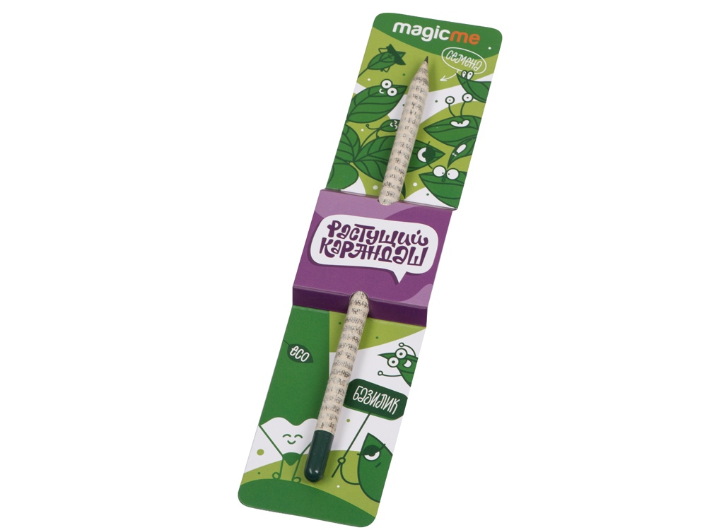 Растущий карандаш сделан из бумаги и на кончике у него желатиновая растворяющаяся капсула с семенами базилика.