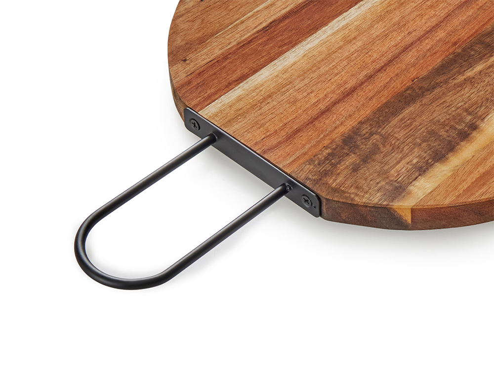 Круглая доска “Кира” из массива акации — не просто кухонная утварь, а настоящее украшение для вашего рабочего пространства. Благодаря твердости древесины и пропитке специальным маслом, поверхность устойчива к появлению глубоких царапин и впитыванию запахов, способна сохранить безупречный вид долгие годы. Удобная металлическая ручка позволяет легко перемещать доску по кухне, а после использования — отправить её на крючок для компактного хранения. Диаметр 23 см идеально подходит для нарезки овощей, зелени, сыра или эффектной сервировки закусок перед подачей на стол. Подарите себе гармонию функциональности и природной эстетики с доской «Кира».