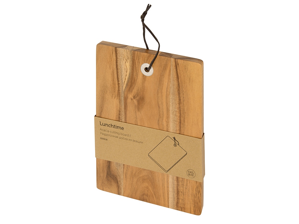 Разделочная доска «Lunchtime» идеально подойдет для нарезки овощей, мяса и других продуктов. Доска выполнена из высококачественной акации, главным достоинством которой является высокая стойкость к влаге. Помимо того, что предметы из данной древесины всегда выглядят очень эстетично и стильно, разделочная доска «Lunchtime» прослужит длительный период, стойко перенося влагу и механические нагрузки. Имеется ремешок для подвешивания, выполненный из натуральной кожи.
