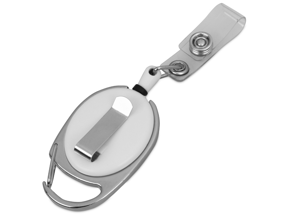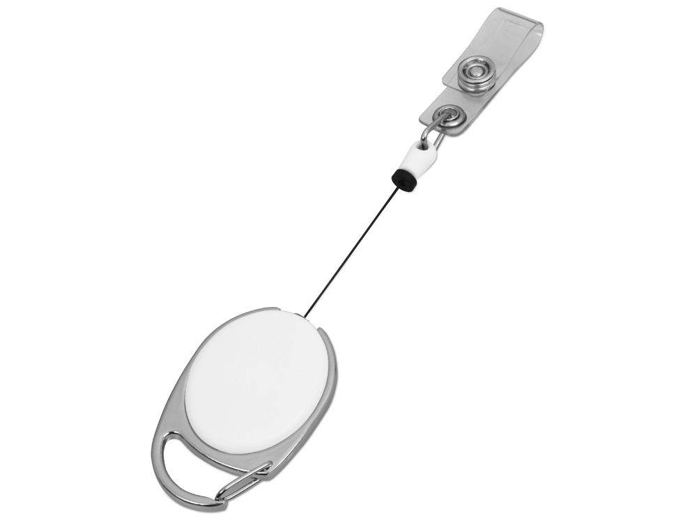 Ретрактор надежно крепится к поясу или другим вещам при помощи металлического карабина. Бейдж или пропуск удобно закрепляется кнопочным механизмом с петлей. Длина шнура – 90 см.