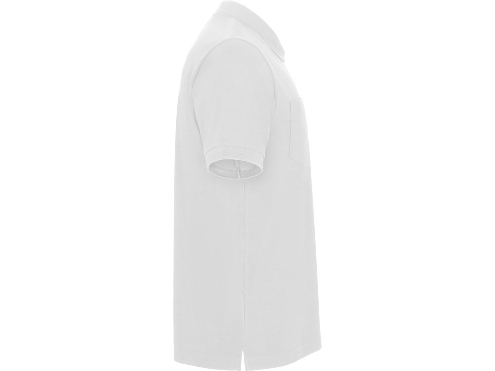 Рубашка поло с коротким рукавом и накладным карманом. Воротник и манжеты из риба 1х1 со структурными полосками по краю. Планка застегивается на три пуговицы. По горловине укрепляющая тесьма.
